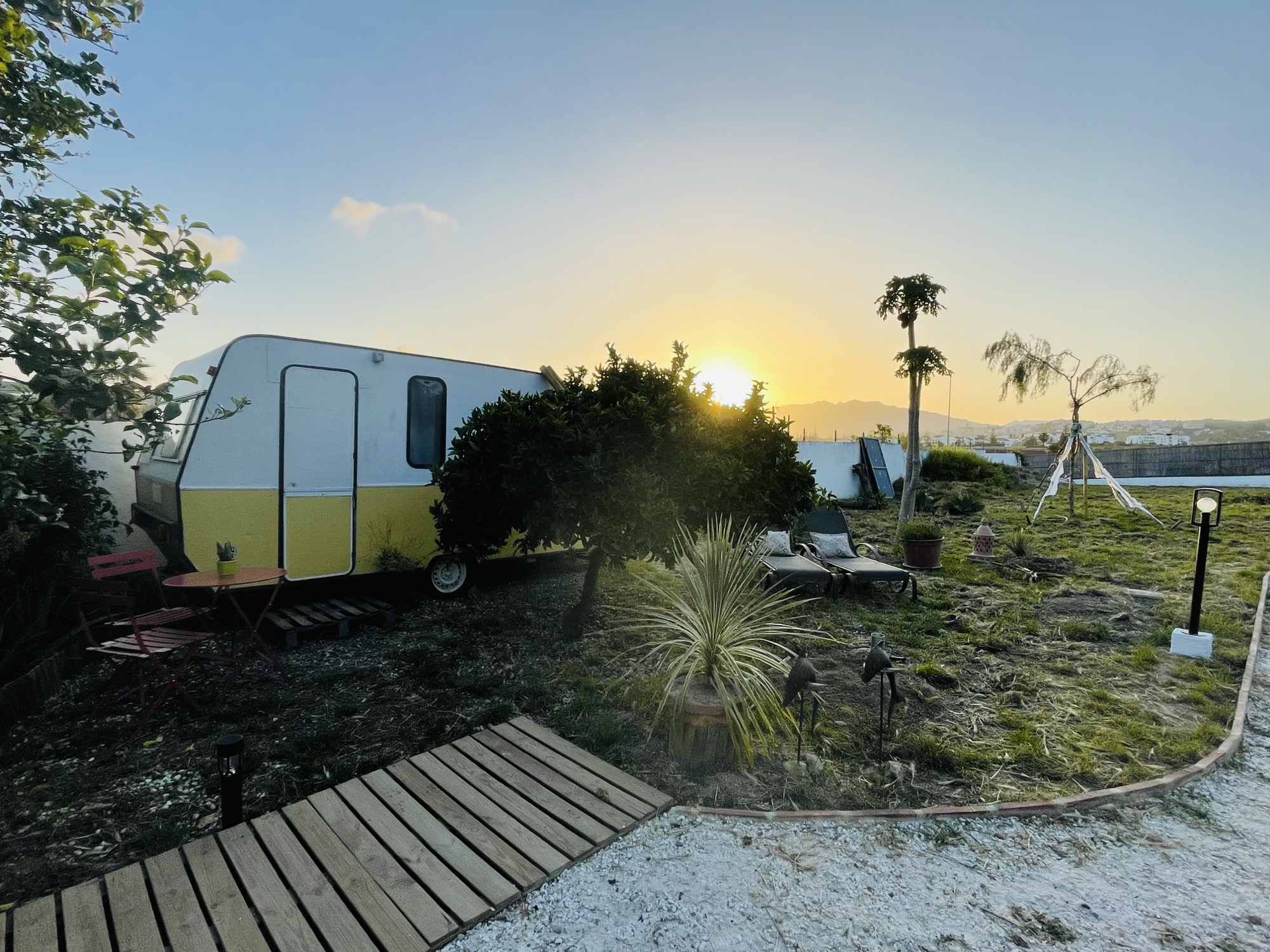 Caravanas vintage restauradas con todo lo necesario. Despiertas con vistas al jardín, duermes con el sonido de la naturaleza. Sin wifi obligatorio.
